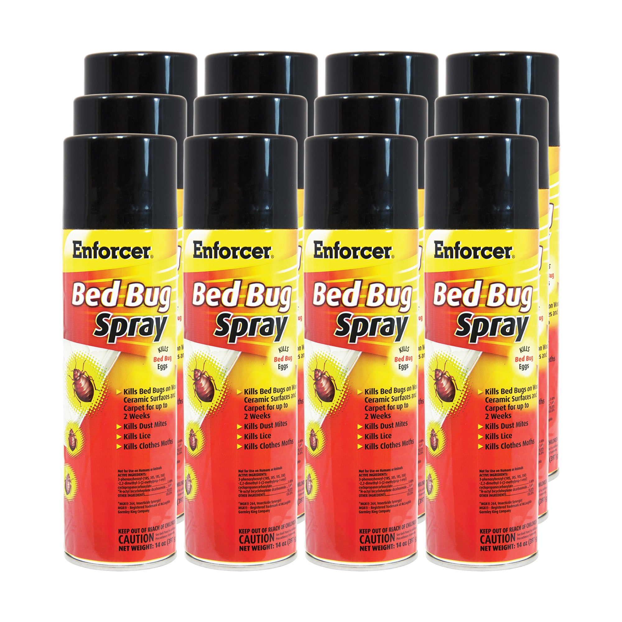 Kill bed bugs and their eggs with Enforcer?½ Bed Bug Spray. a non-Permethrin formula that can be sprayed directly on mattresses. furniture. carpet. luggage. and bedding. Available in 14oz