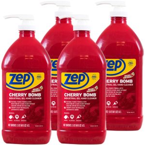 Zep Cherry Bomb is an Industrial Hand Degreaser and Cleaner that removes stubborn industrial soils such as grease. tar. carbon. asphalt. inks. resins. paints & adhesives. No matter how grimy your hands get. this heavy-duty hand cleaner powers away tough greases. soils. oils. and odors. It even removes tough petroleum and solvent odors. leaving a fresh cherry scent. Plus it contains emollients that moisturize hands and prevent dryness.