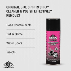 Original Bike Spirits Spray Cleaner and Polish is the ultimate detailer in a can for any motorcycle. ATV. scooter. or power equipment. With its unique. waterless formula. this motorcycle cleaner makes cleaning your bike simple. leaving a stunning shine. Designed to clean. polish. and protect surfaces. it’s perfect for on-the-go detailing with anti-static properties that help repel dirt and dust.