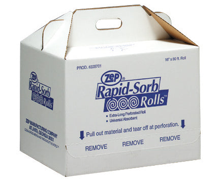 An absorbent roll that provides continuous pick up spilled or leaking liquids.