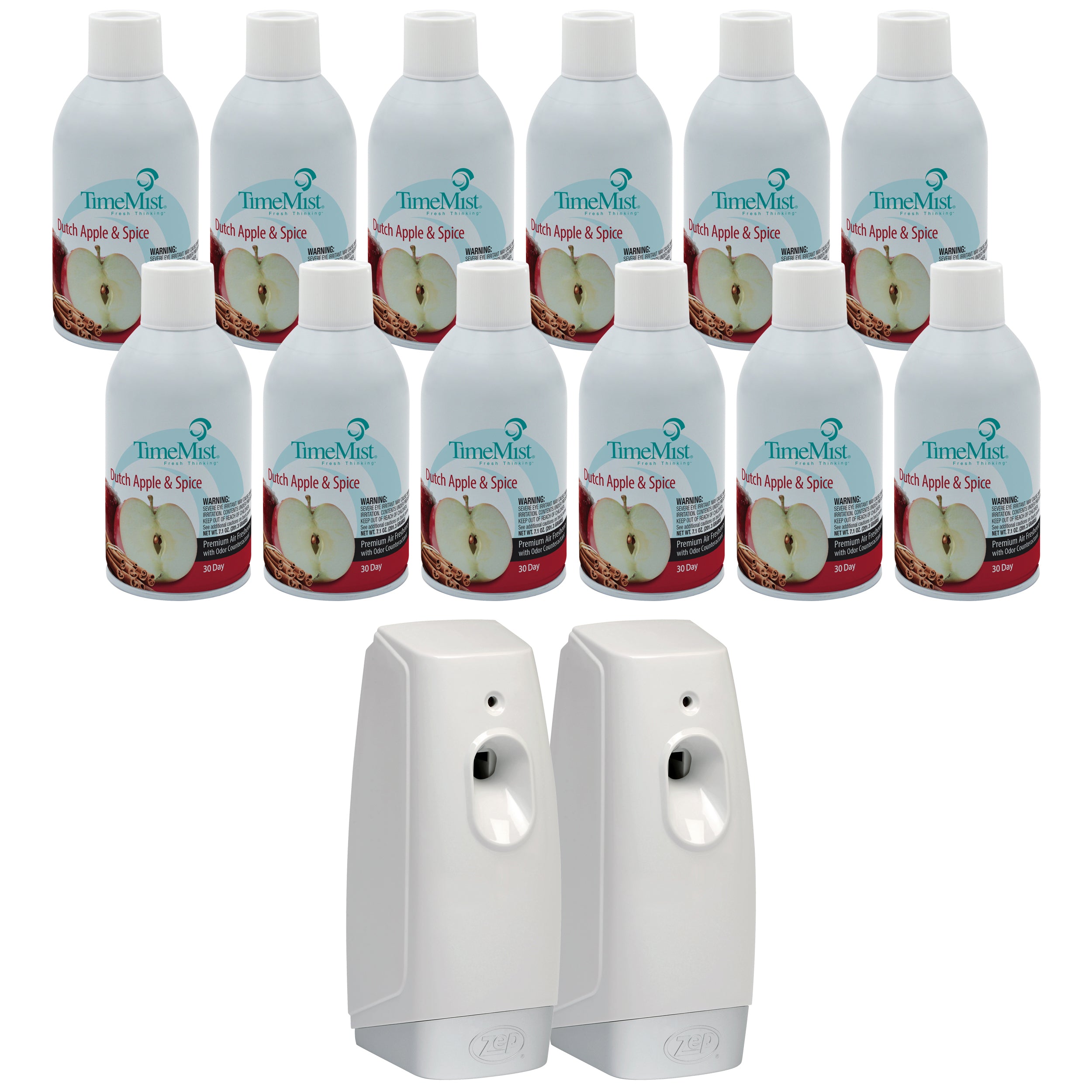 TimeMist Premium Metered Air Freshener Refills. Dutch Apple Spice (Case of 12) and Meter Mist 3000 Ultra Dispenser (Case of 2) – 7.1 oz Bundle