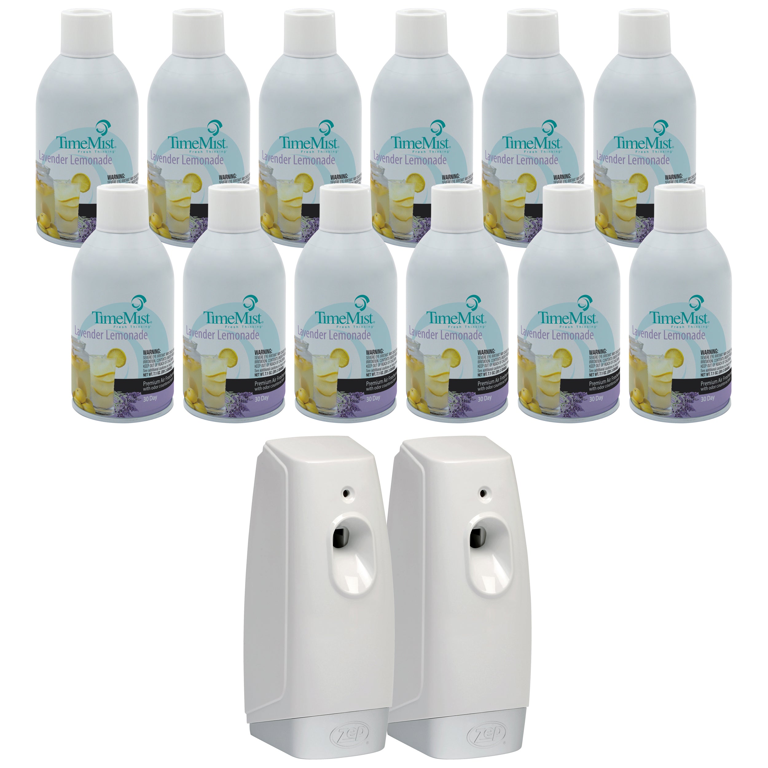 This air care bundle is perfect for tackling bad odors and large spaces with the combination of the Zep Time Mist Premium Lavender Lemonade Air Freshener Refill and the Meter Mist 3000 Ultra Dispenser. Our Lavender Lemonade fragrance is an innovative infusion of delicate lavender. zesty lemon. and watery florals that create a clean. calming sensation. Intelligently designed with both fragrance and odor counteractants. our can offers the highest quality premium fragrance containing essential oils and a trend-forward selection to meet diverse customer needs. Paired with the Zep 3000 Ultra Dispenser. it provides dependable automatic dispensing that continuously protects your environment against unpleasant odors. The dispenser is designed to meter an exact amount of odor control based on settings. and the simplified user interfaces allow for easy and flexible programming.