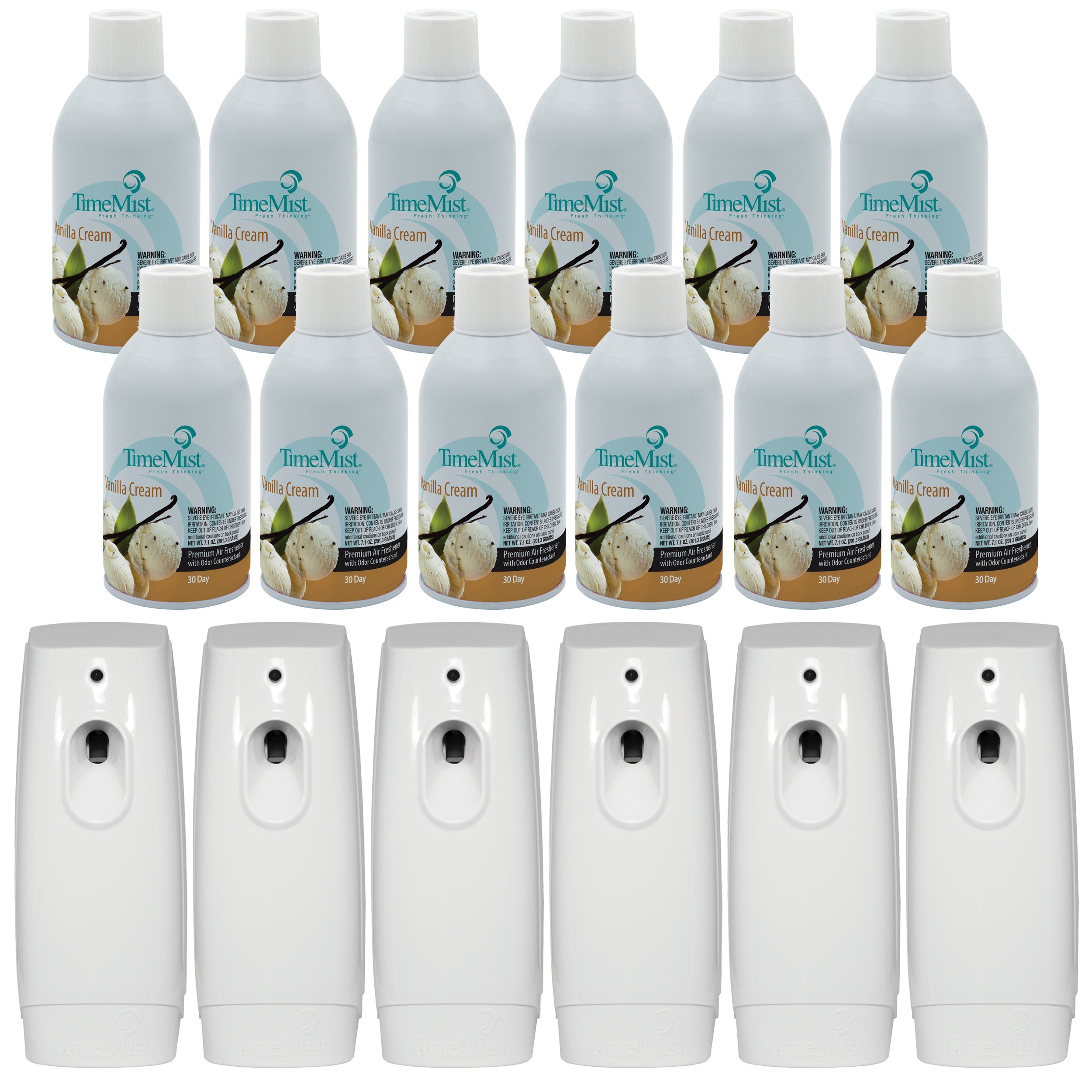 TimeMist Premium Metered Air Freshener Refills. Vanilla Cream (Case of 12) with TimeMist Metered Aerosol Fragrance Dispenser (Case of 6) Bundle