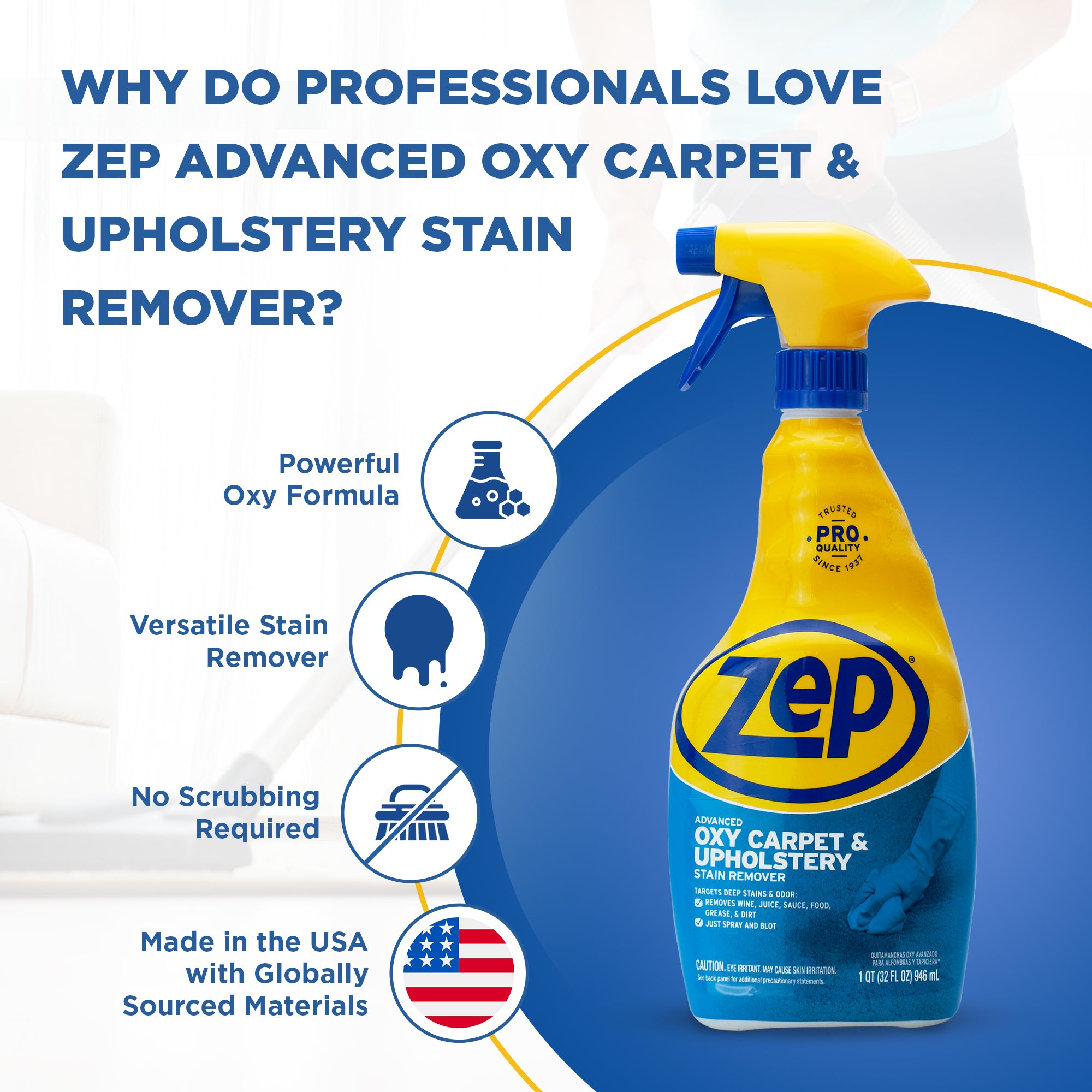 Zep Advanced Oxy Carpet & Upholstery Stain Remover harnesses the power of peroxide to break down and lift tough stains with ease. This oxy spot remover penetrates deep into carpet and upholstery fibers to remove stains from wine. food. grease. and dirt.