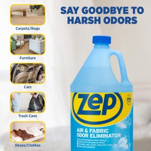 Zep Air & Fabric Odor Eliminator is a professional-grade deodorizer formulated to neutralize the toughest odors on contact. Ideal for use on carpets. upholstery. clothing. bedding. and rugs. as well as for freshening the air in any room. this versatile product ensures a fresh and pleasant atmosphere. With a long-lasting fresh breeze scent. it leaves your home. car. office. or business smelling clean and inviting. Whether you’re tackling pet odors. food smells. or other stubborn malodors. Zep Air & Fabric Odor Eliminator provides effective and reliable deodorizing.