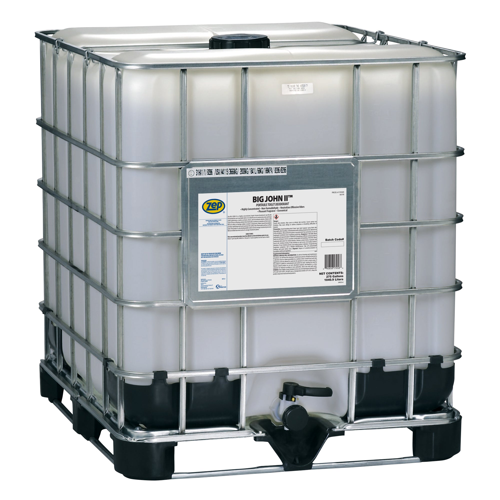 Zep Big John II is a highly concentrated portable toilet deodorizer that neutralizes foul odors and keeps portable restrooms fresh and clean. Its formaldehyde-free formula makes it ideal for construction sites. public events. buses. boats. and recreational vehicles. This water-based deodorizer quickly dilutes with water. creating a powerful solution that eliminates odors at their source. Biodegradable under normal sewage treatment processes and non-flammable. it disperses rapidly while protecting rubber and plastic components from damage.