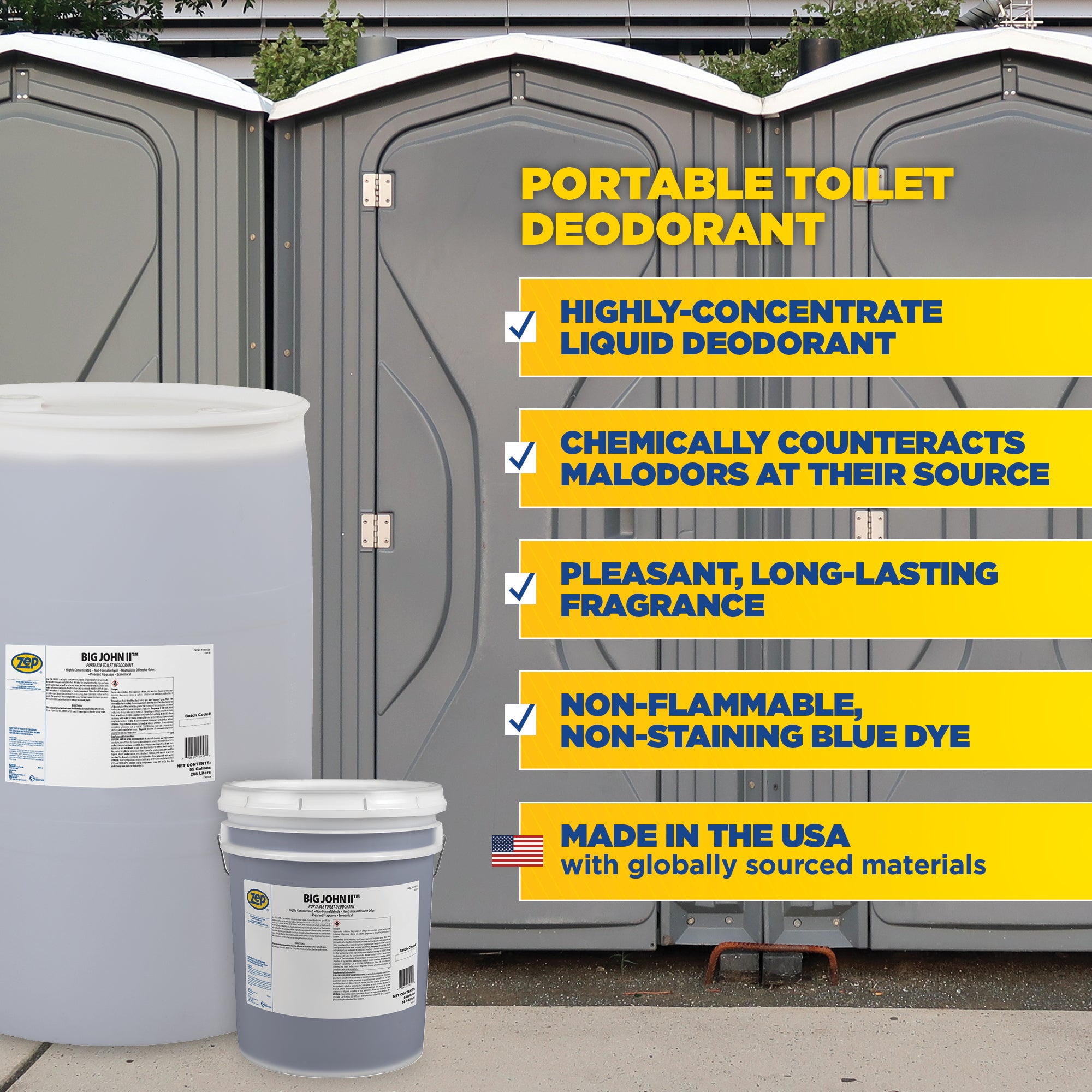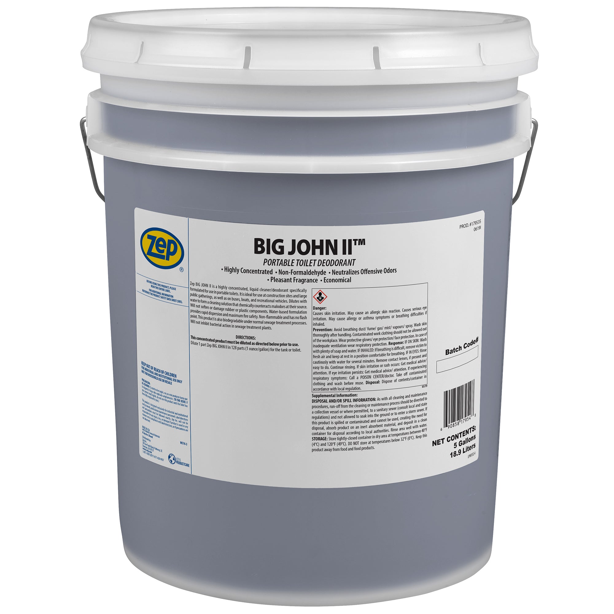 Zep Big John II Portable Toilet Deodorant – Concentrated Cleaner for Odor Control – 5 Gallon