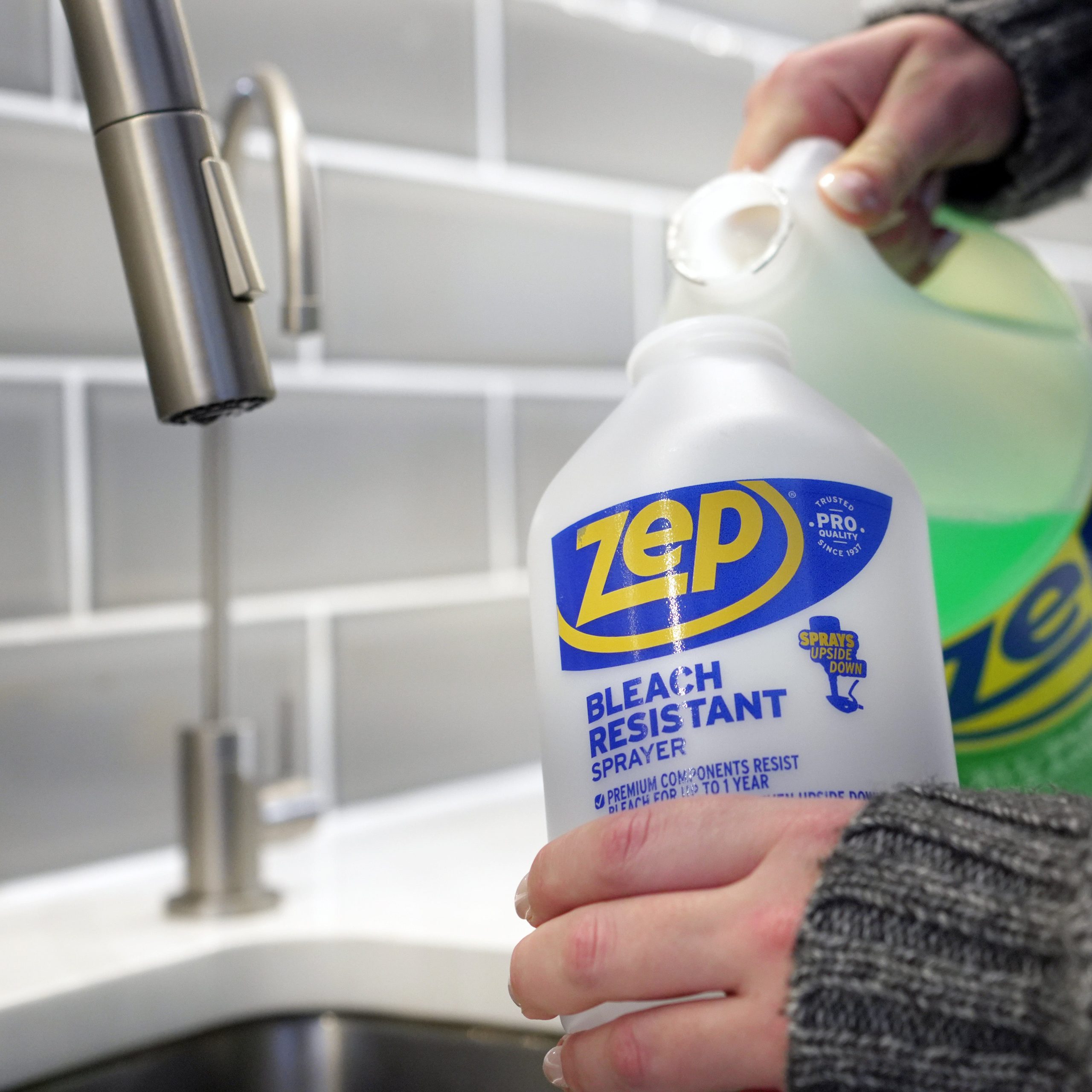 Zep Bleach Resistant Sprayers are a durable. high output spray bottle built with premium bleach-resistant components. Perfect for professionals who work with harsh chemicals. this reliable sprayer lasts up to one year. even with frequent use. This reusable bottle can also be sprayed at any angle and is a sustainable option compared to one time use bottles.