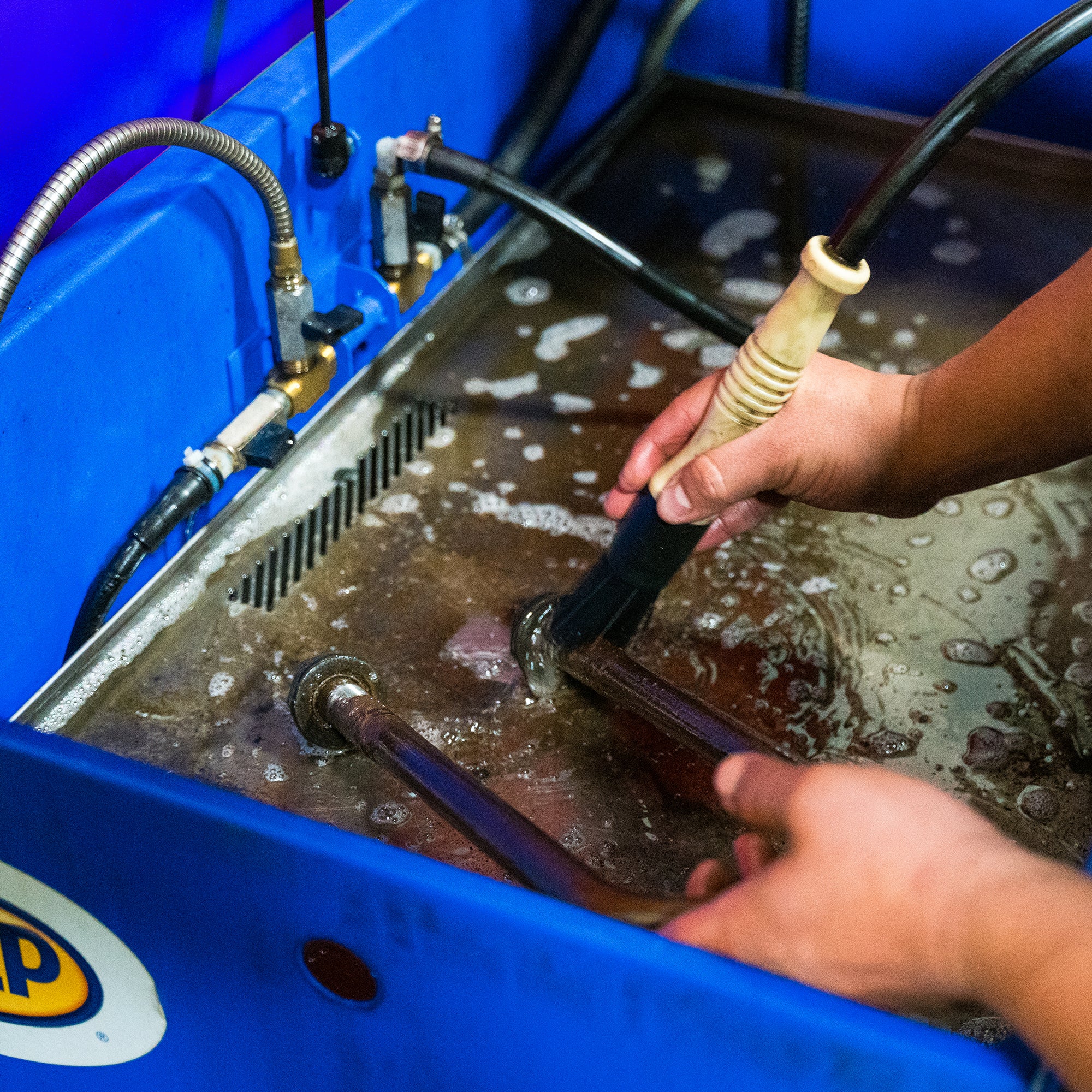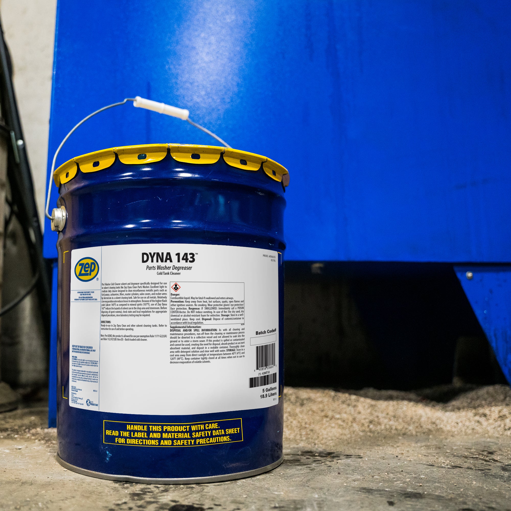 Zep Dyna 143 Parts Washer Degreaser is a cold. parts washer solvent designed for use in solvent cleaning tanks like the Zep Dyna Clean Parts Washer. This light to medium duty parts cleaner and degreaser is great for cleaning metallic parts such as fuel pumps. carburetors. filters. master cylinders. valve covers. and rocker arms by immersion in a solvent cleaning tank. Safe for use on all metals. it has a relatively slow evaporation rate that reduces losses to the atmosphere. The higher flash point (above 140°F) compared to mineral spirits (107°F) reduces the hazards of solvent use in the shop area and storeroom. Reduces frequency of solution change out.
