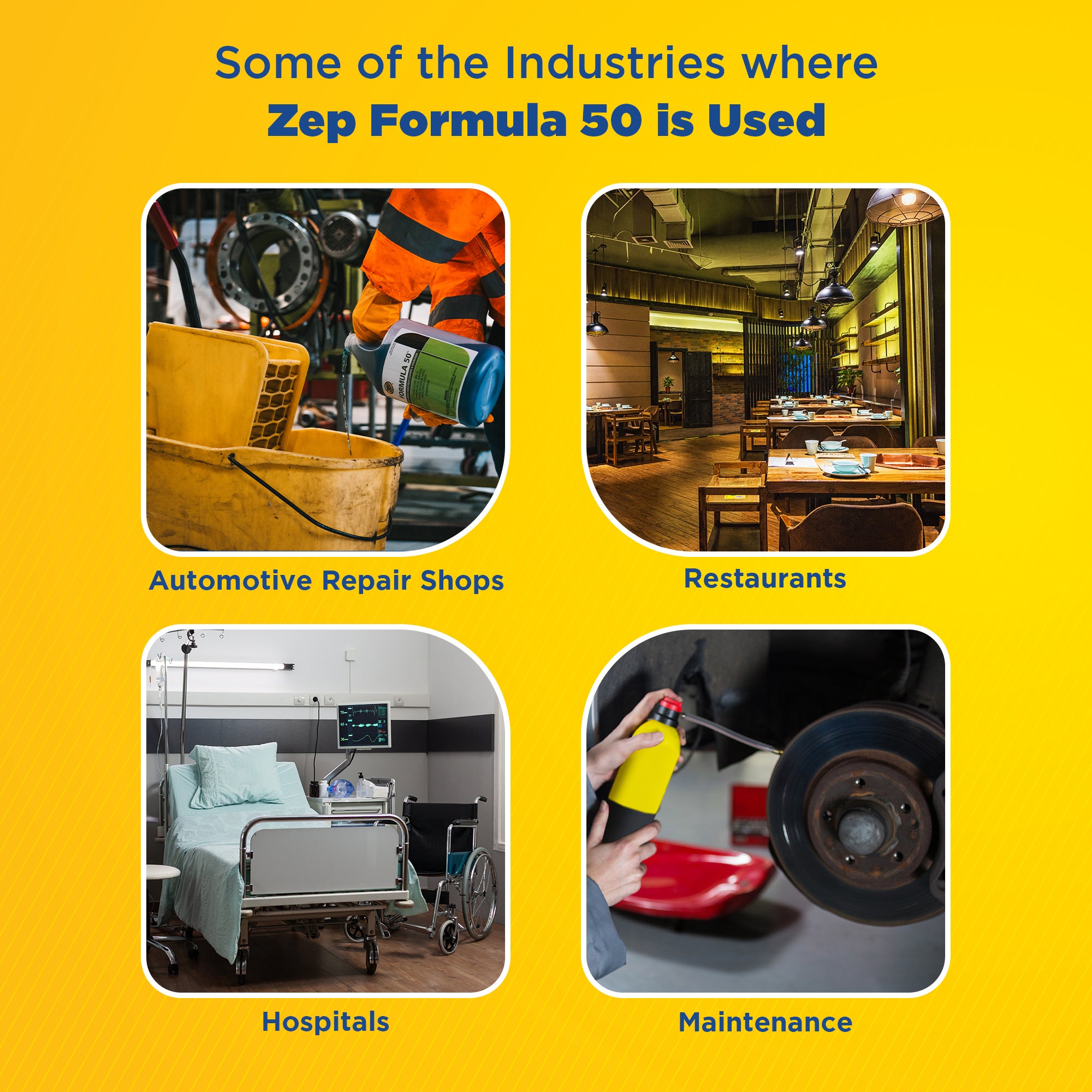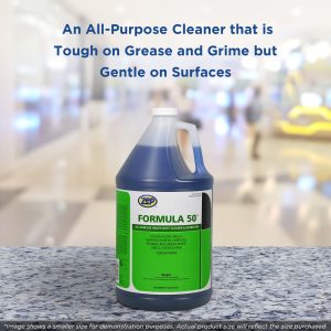 Zep Formula 50 is a heavy-duty cleaner and degreaser for tough industrial and commercial cleaning tasks. This concentrated formula effectively removes dirt. grease. and grime from a variety of surfaces. including floors. walls. unpainted metal surfaces. engines. machinery. grills. and ovens. Zep Formula 50 is non-abrasive and non-flammable. making it great for routine cleaning.