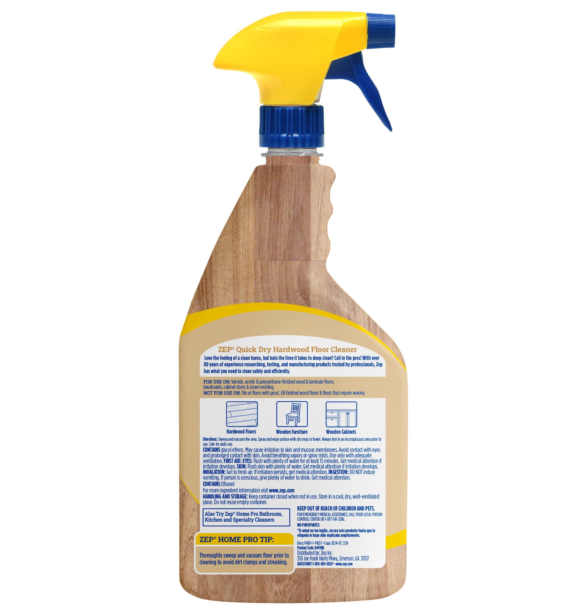 Zep Home Pro Hardwood Floor Cleaner is formulated to clean varnish. acrylic. and polyurethane-finished wood and laminate floors without leaving any residue behind. Its quick-drying formula lifts and loosens dirt for an easy. thorough clean that helps maintain the natural appearance of hardwood. This versatile solution can also be used on sealed wood furniture. kitchen cabinets. baseboards. and crown molding for a consistent clean throughout the home. With a light Lavender & Sandalwood fragrance. it leaves surfaces smelling as clean as they look.