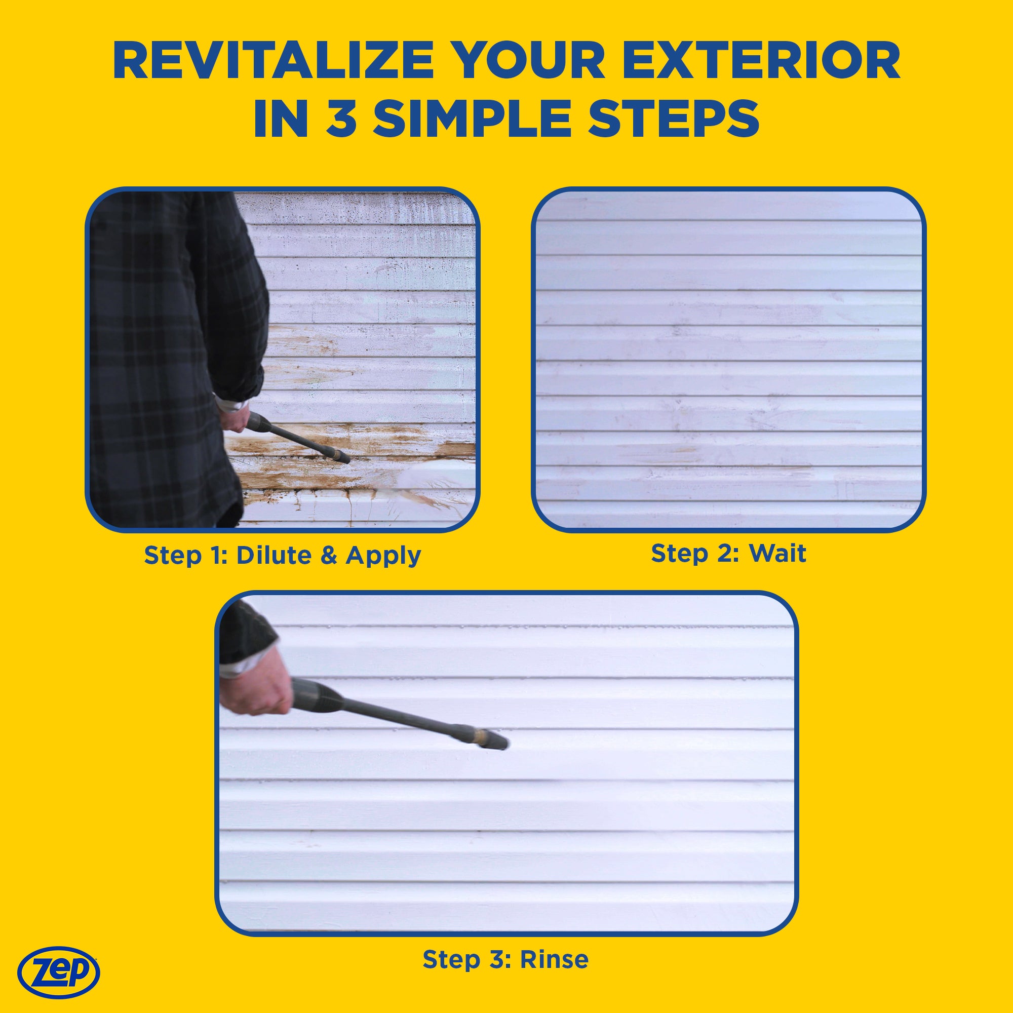 Zep House & Siding Pressure Wash Cleaner Concentrate is a powerful. construction-grade outdoor cleaner designed to eliminate stubborn dirt. mildew stains. and algae stains on a variety of exterior surfaces. This high-performance cleaner is great for reviving vinyl. aluminum. wood siding. and other materials such as hard coat stucco and brick. enhancing curb appeal by restoring a clean. fresh appearance. The concentrate creates up to 20 gallons of cleaning solution. making it an economical choice for large projects. This versatile formula is suitable for both manual application and pressure washing systems. ensuring thorough cleaning without scrubbing. With its pro-grade quality. Zep House & Siding Pressure Wash Cleaner Concentrate is an essential addition for any exterior cleaning routine.