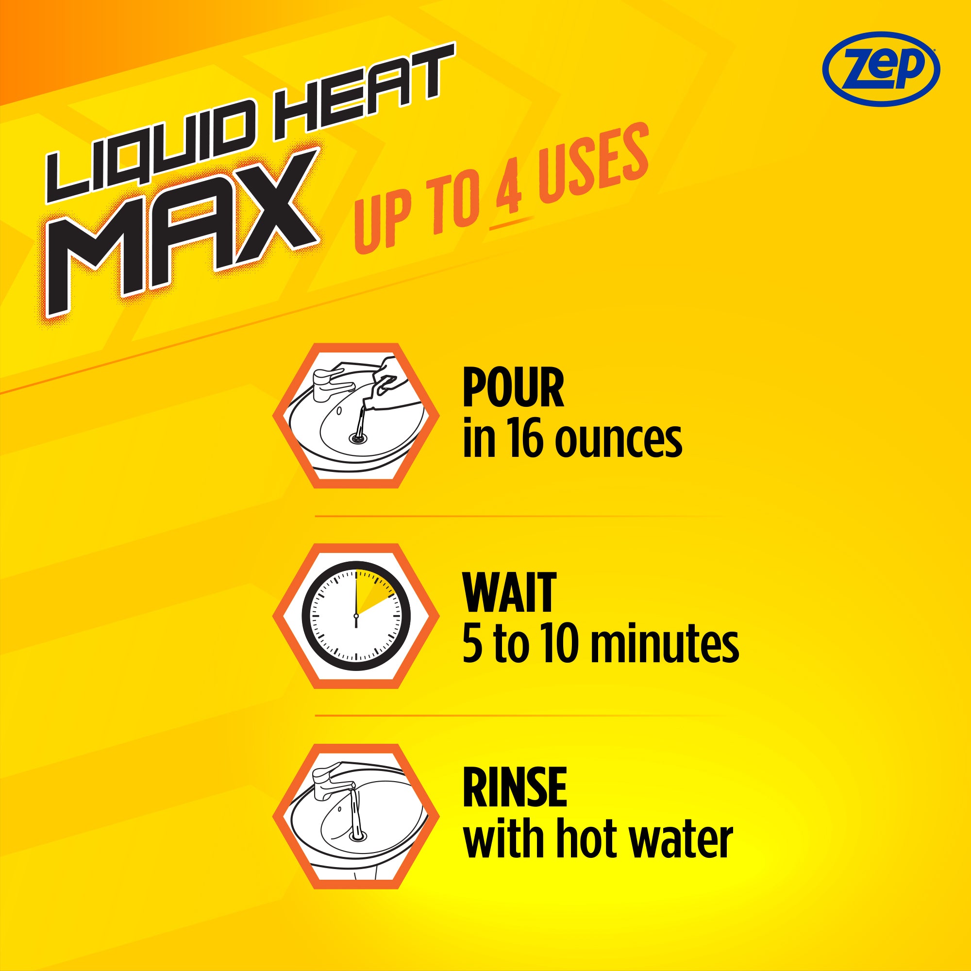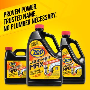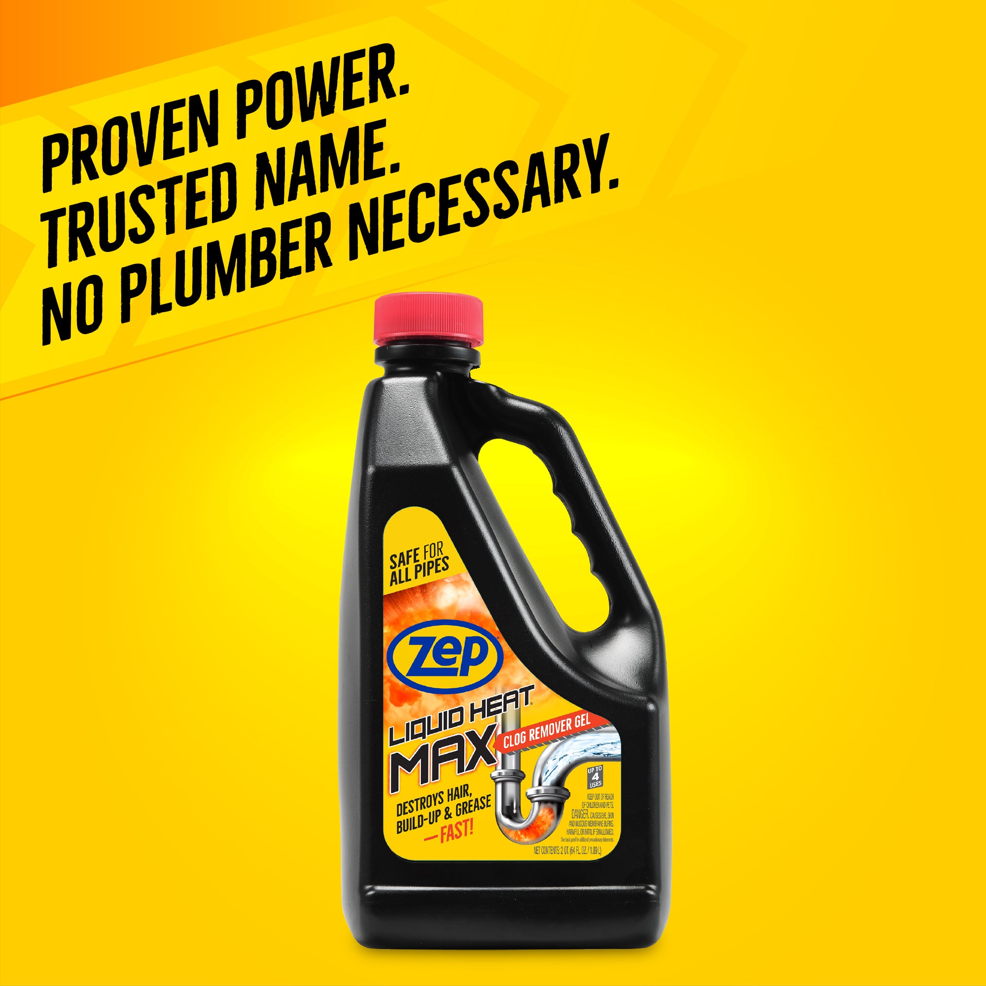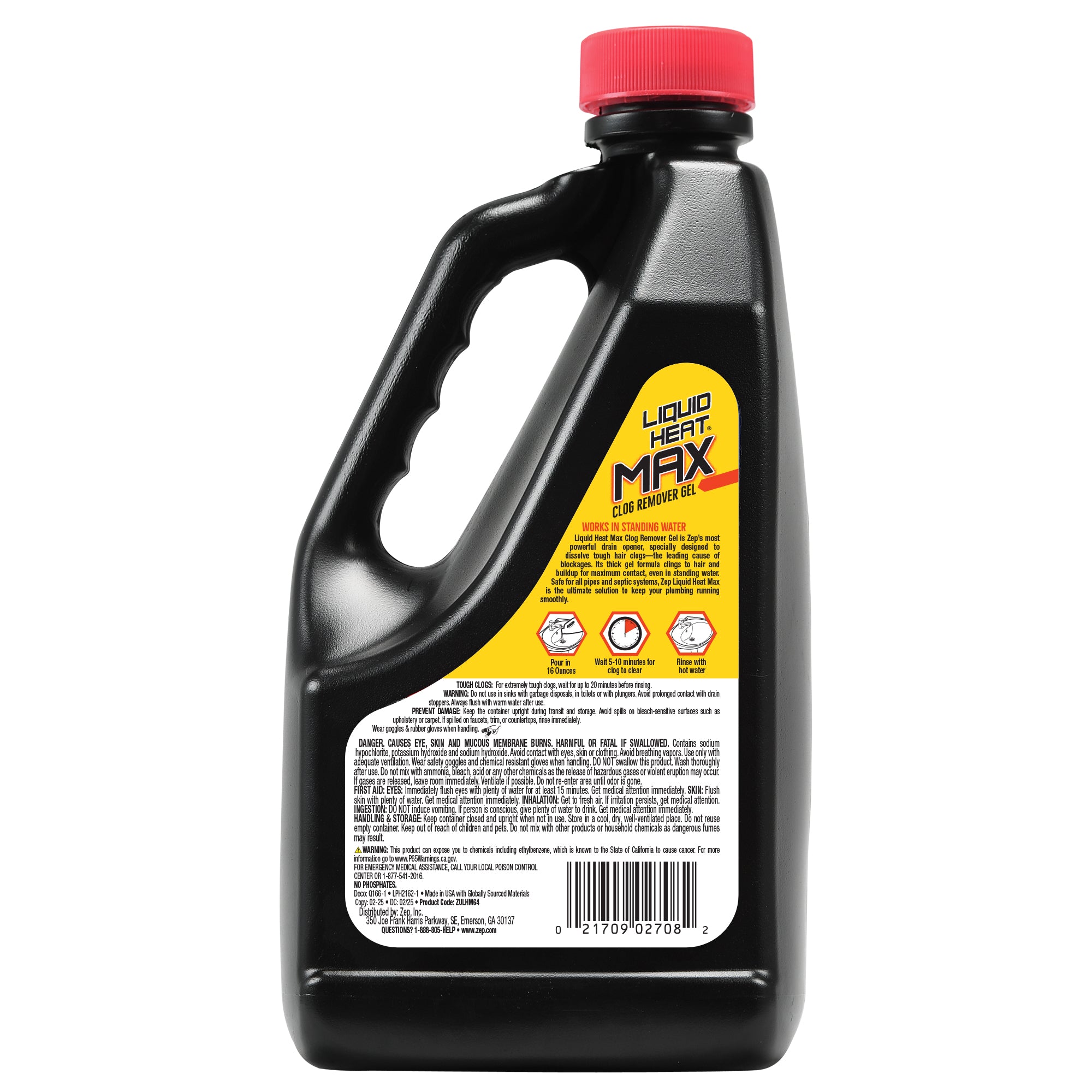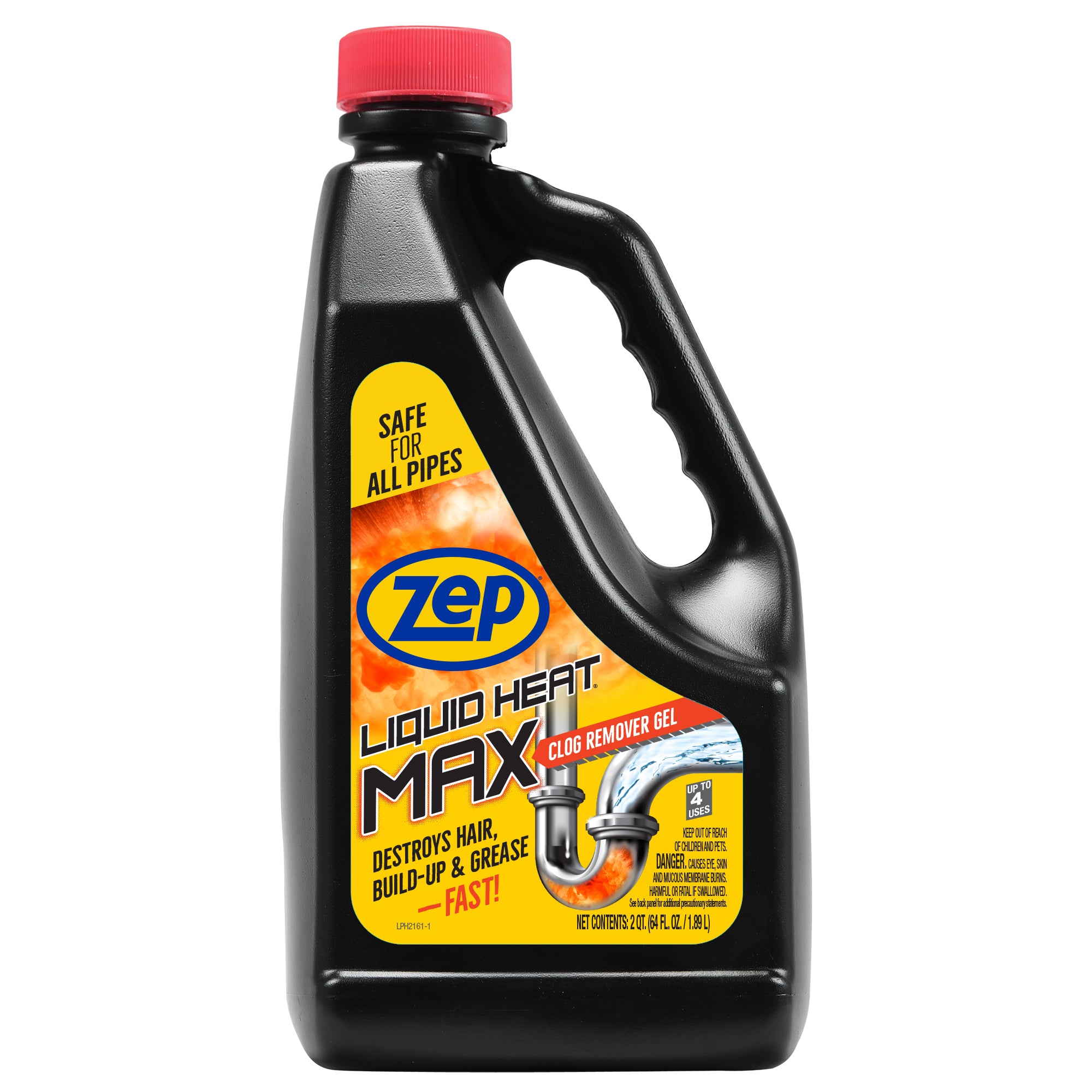 Engineered for maximum effectiveness. Zep Liquid Heat Max Clog Remover Gel blasts through hair. grease. and buildup—the most common causes of household clogs. The professional-strength formula cuts through standing water and clings to debris for superior penetration and clog-busting power. Safe for use in all types of pipes and septic systems. it’s ideal for bathroom sinks. tubs. showers. and kitchen drains. Whether you’re dealing with a slow drain or a complete backup. trust Liquid Heat Max to restore flow quickly and safely—without damaging plumbing or calling a professional.