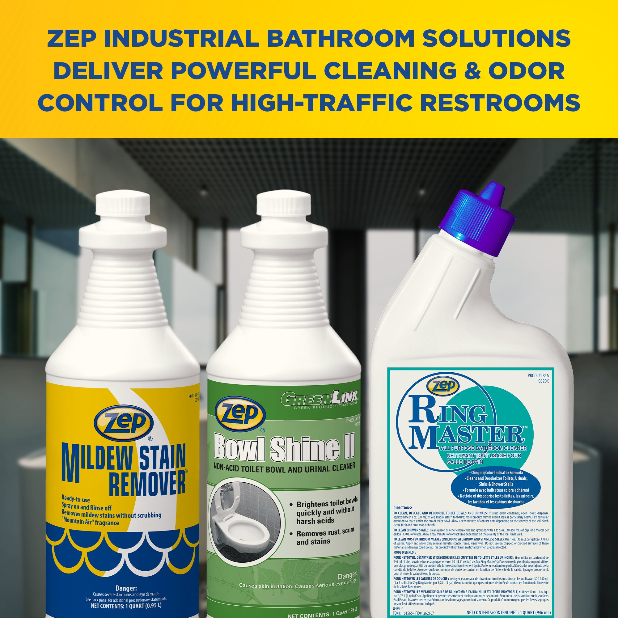 Zep Mildew Stain Remover is a ready-to-use cleaner for removing stubborn mold stains and mildew stains. Effective on bathroom tiles. grout. shower curtains. walls. ceilings. concrete. outdoor furniture. and poolside areas. With its industrial-strength formula. this cleaner removes mold stains and mildew stains without the need for scrubbing.