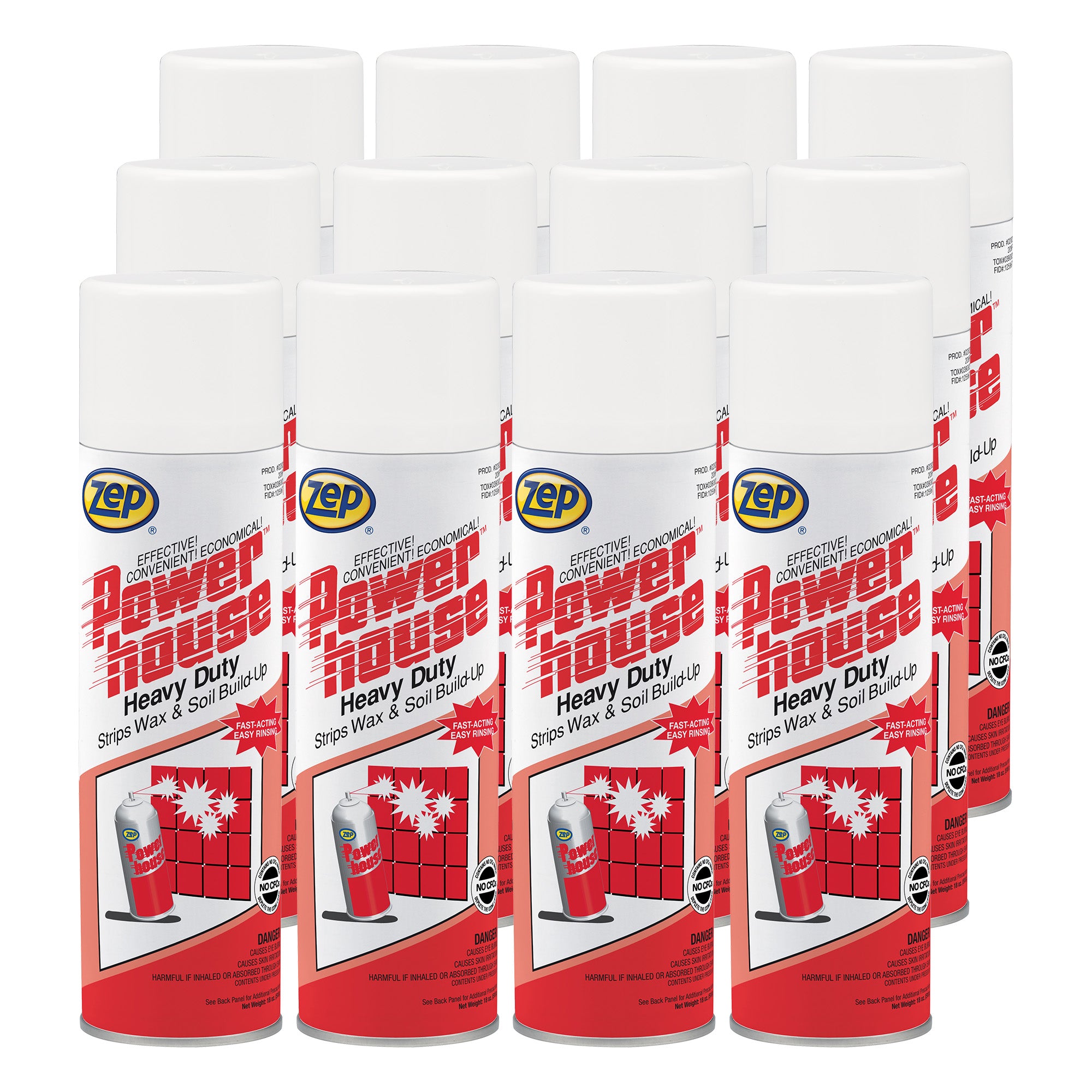 Zep Powerhouse is a fast-acting. heavy-duty wax stripper that removes tough wax buildup and old floor finishes from all types of composition floors. Its aerosol formula provides direct. controlled application. even on vertical surfaces. making it ideal for baseboards. corners. and hard-to-reach areas. Whether applied with a floor machine. hand pad. or wiped off manually. Zep Powerhouse effectively breaks down and removes wax buildup. leaving surfaces clean and residue-free.
