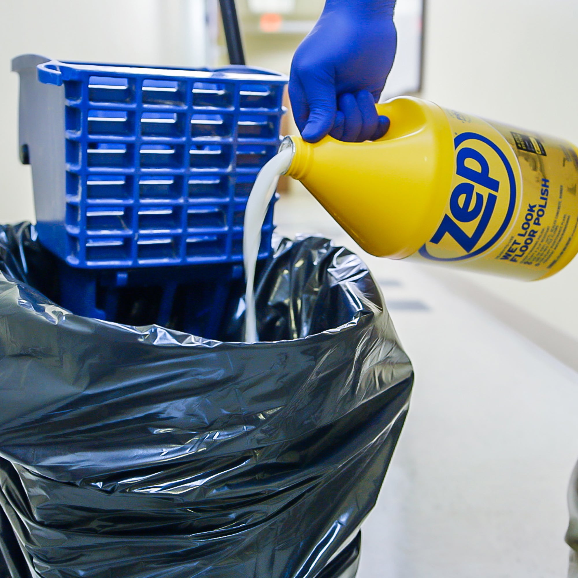 Zep Wet-Look Floor Polish is a finishing polish designed to enhance the appearance of hard interior floors. This polish delivers a slip-resistant. high-gloss finish that resists scuffs and heel marks. Ideal for use on vinyl composition tile. sealed concrete. rubber. asphalt and tile floors. Great for high-traffic areas such as supermarkets. lobbies. schools. retail stores and places that are frequently buffed or burnished.